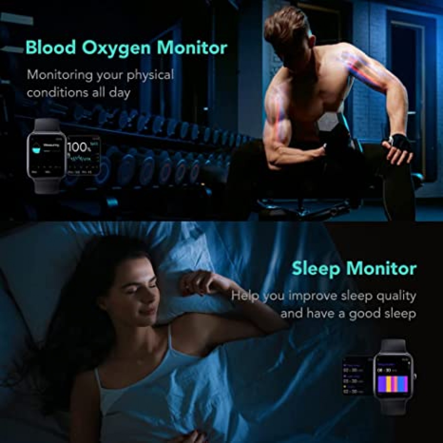 - Cuida tu salud de tu muñeca: puedes medir tu saturación de oxígeno en sangre y comprender tu estado físico. Ideal para deportes de alta intensidad como entrenamientos de maratón y gimnasio. El reloj inteligente V7 también analiza profesionalmente la calidad del sueño para ayudarte a ajustar tus hábitos de sueño. Incluso monitorea tu siesta diaria de 20 minutos