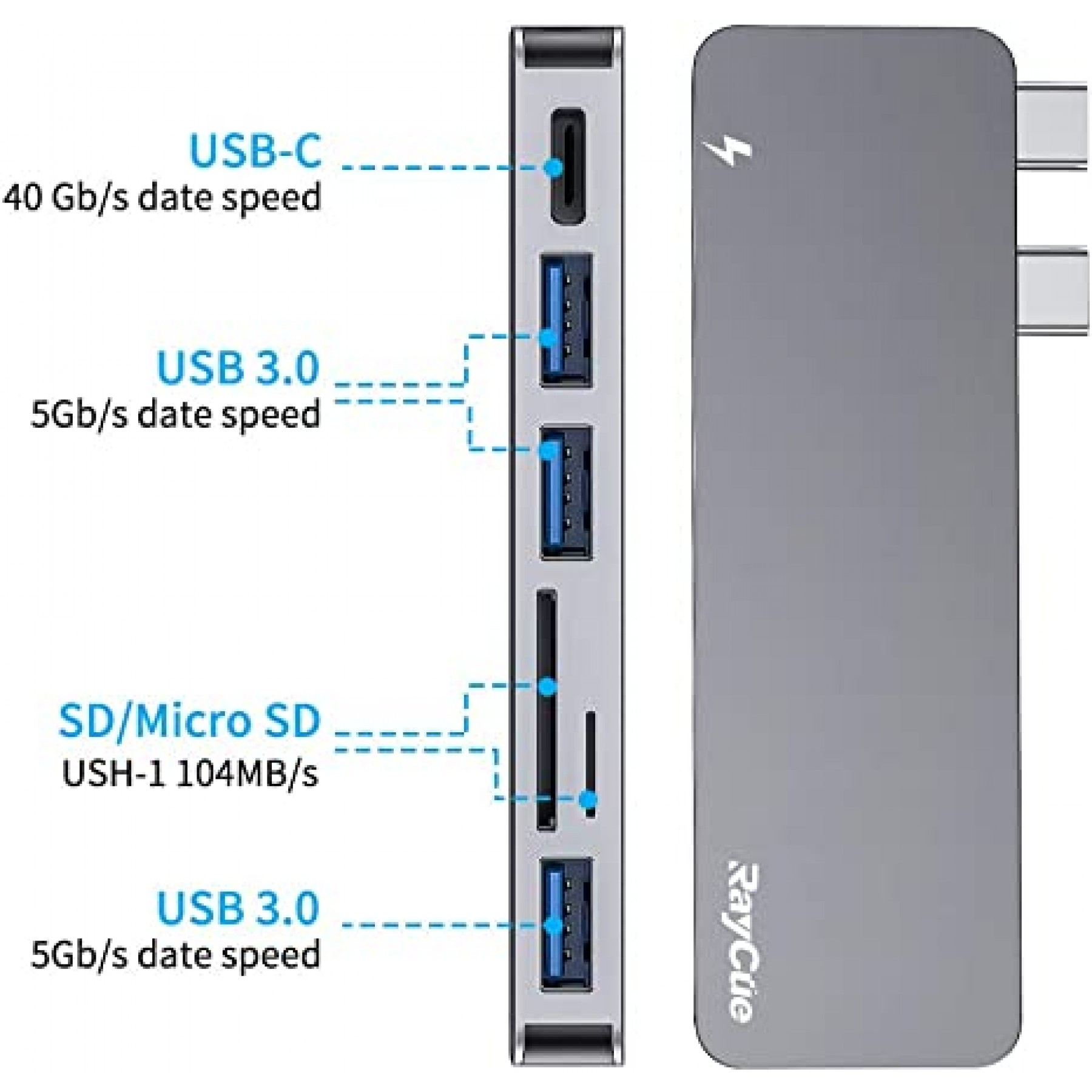 - 【Carga Thunderbolt 3】 Este hub USB C con puerto de carga de paso Thunderbolt 3 soporta Power Delivery(PD), carga rápidamente tus dispositivos conectados mientras muestras o transfieres datos, entrega de potencia máxima de 100 W, soporta cargar tanto 13 pulgadas (61 W) como 15 pulgadas (87 W) MacBook Pro a toda velocidad. Sin preocupaciones por el almacenamiento de energía.