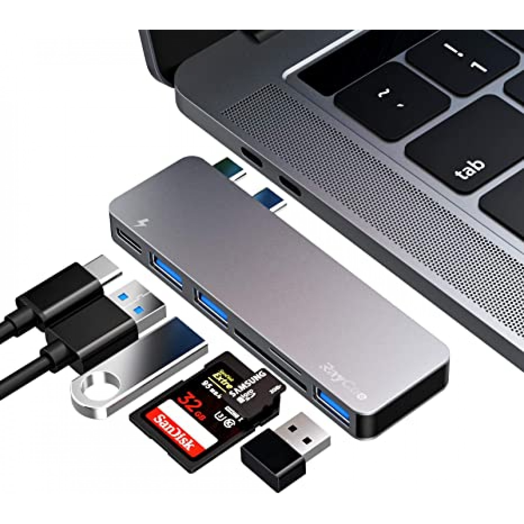 - Hub 6 en 1 tipo C: el producto con 3 puertos USB 3.0, lector de tarjetas TF/SD, puerto USB. Satisface todas tus necesidades con un solo hub. Solo para MacBook Air y MacBook Pro de 13 pulgadas y 15 pulgadas, cuerpo compacto de aluminio de alta calidad. Solo versátil todo en uno que necesitas.