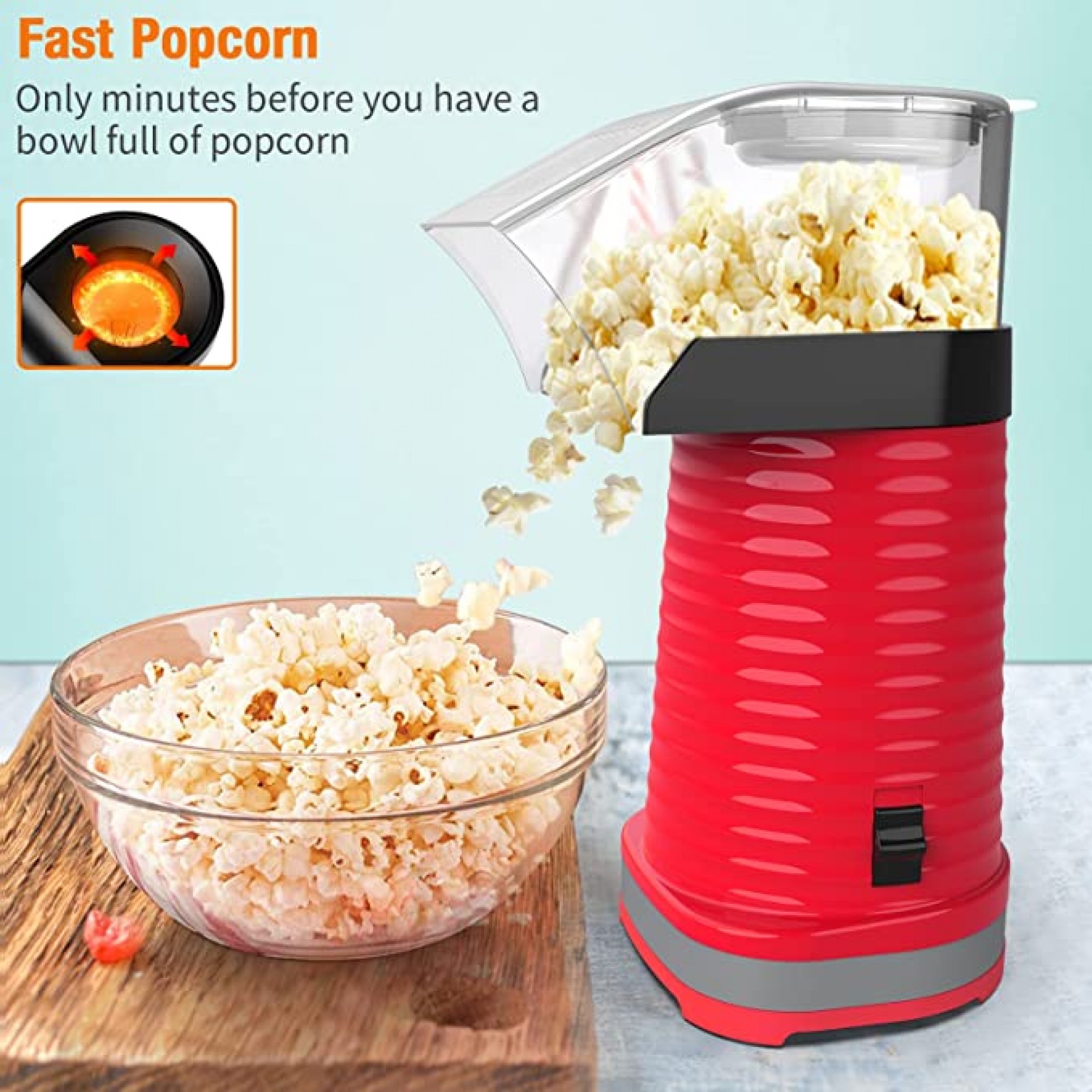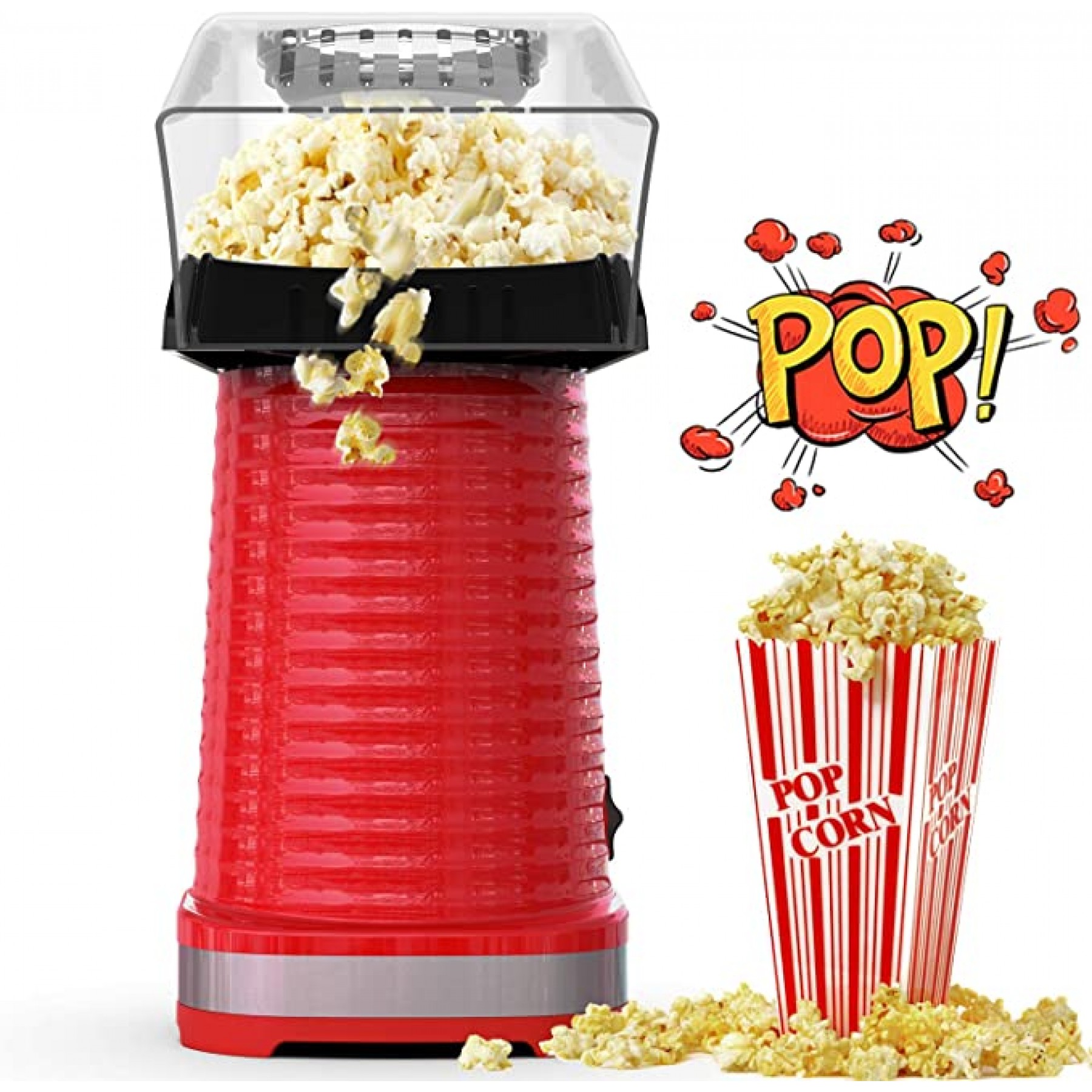 Máquina de palomitas de maíz de aire caliente, máquina de palomitas de maíz para el hogar, no necesita aceite, color rojo, 1200 W
