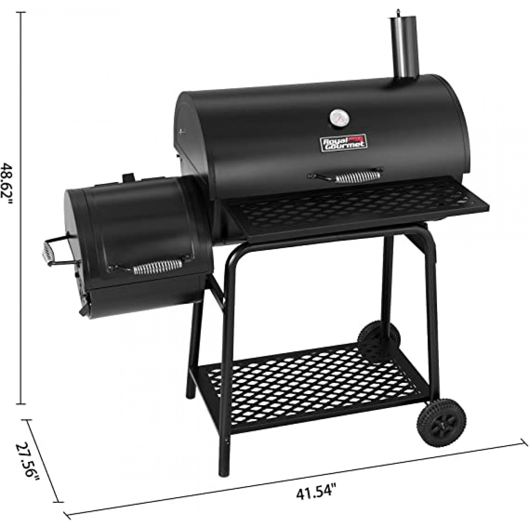 Marca Royal Gourmet Nombre del modelo 90-00-0 Fuente de alimentación Carbón Color Negro Material exterior Acero Peso del artículo 57 Libras